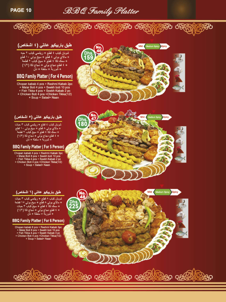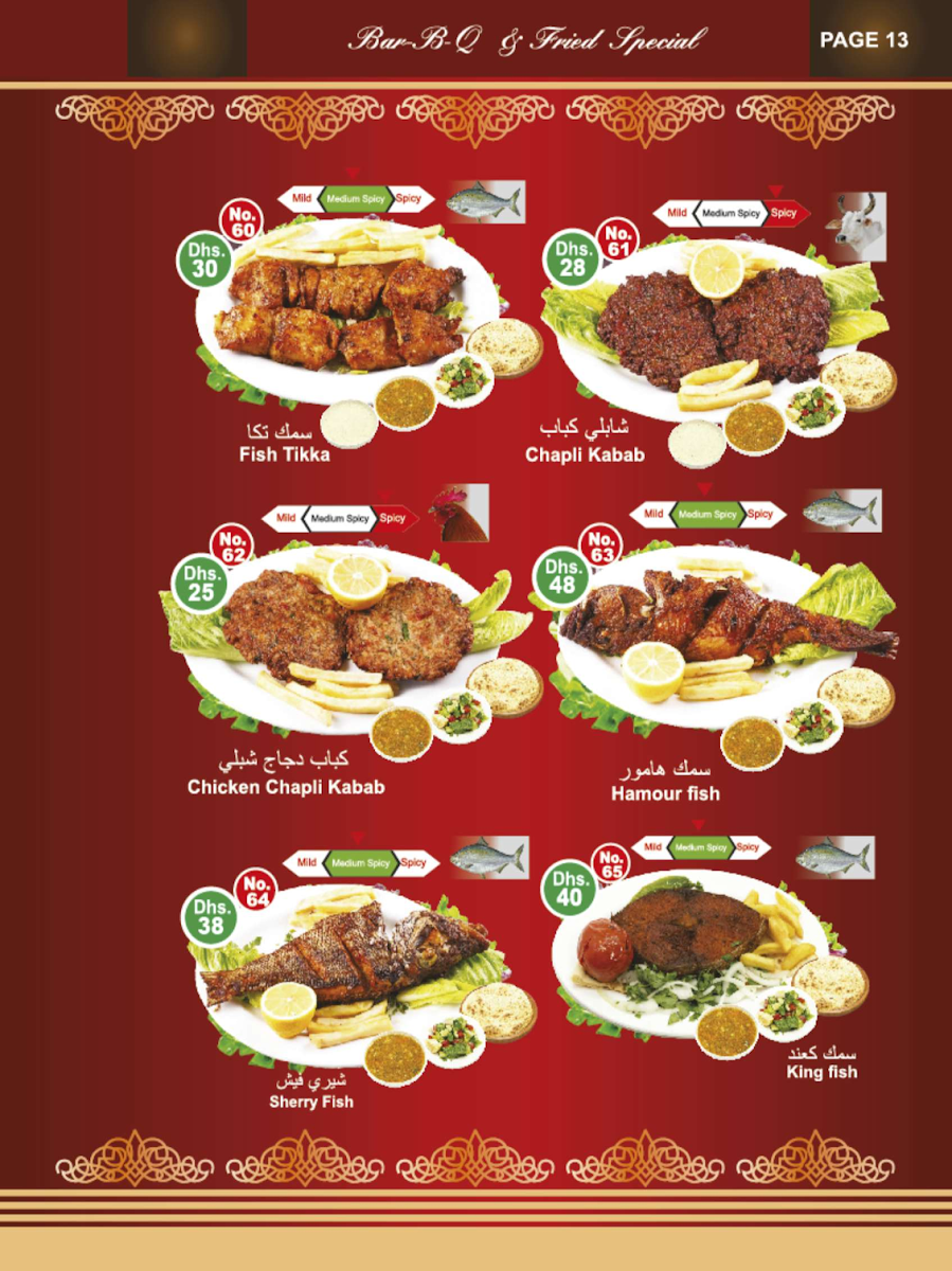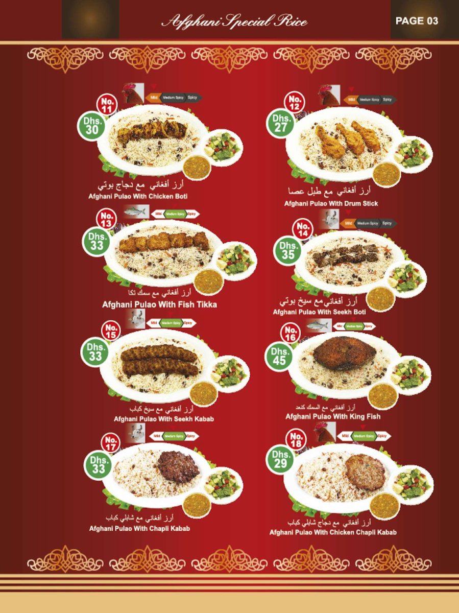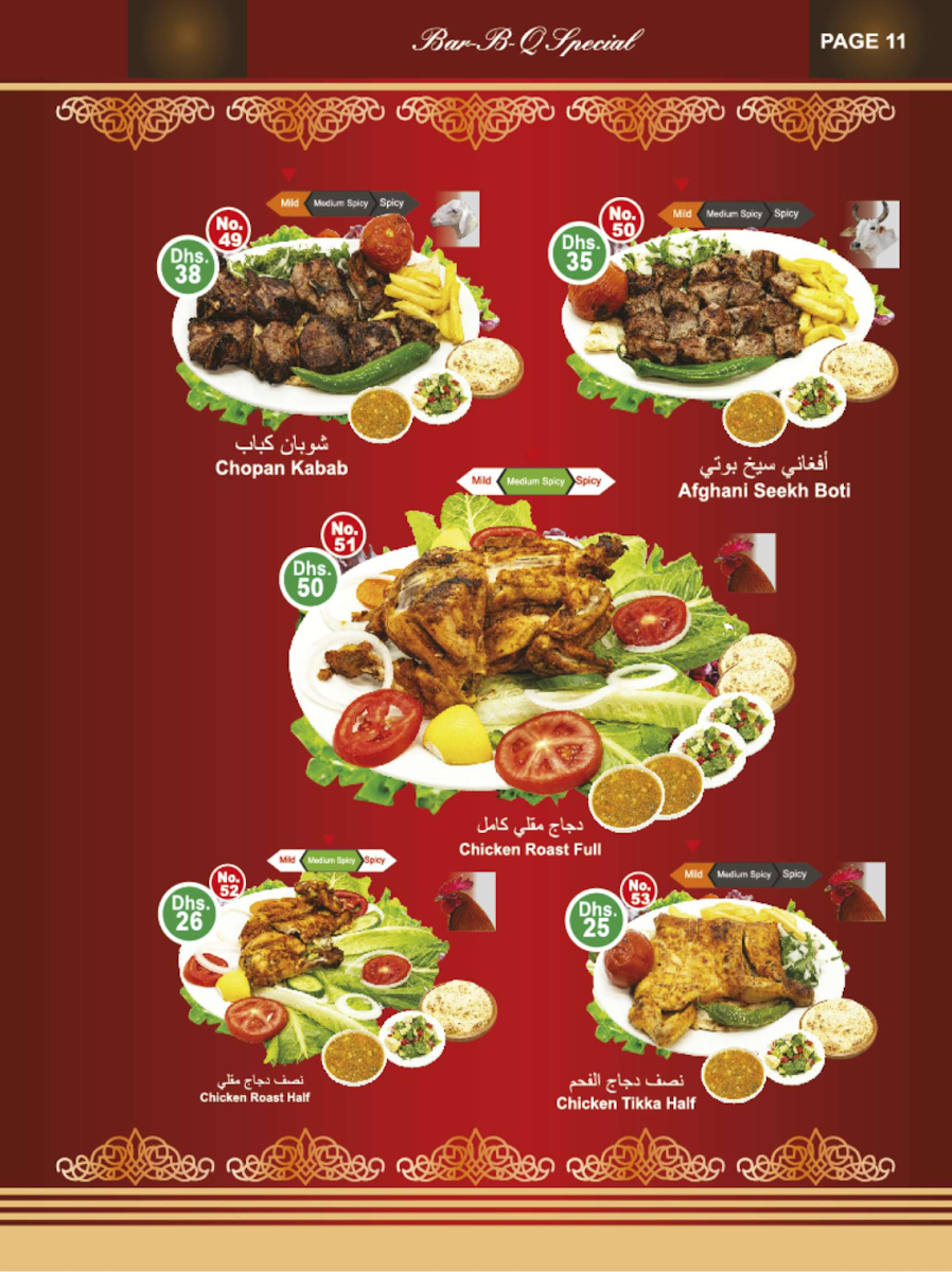 Kabul Darbar Restaurant in Deira, Dubai, offers a rich dive into authentic Afghan cuisine that delights both the palate and the soul. Their menu shines brightest with the Yakhni Pulao series—succulent slow-cooked beef or chicken atop fragrant, seasoned rice, showcasing traditional Afghan cooking at its finest. For grill enthusiasts, the Kabul Darbar Special Mix Grills present a generous assortment of juicy kababs like Malai Boti, Reshmi Kabab, Seekh Boti, and Chopan Kabab, paired perfectly with warm naan, fresh salads, and flavorful soups.